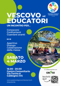 L’appuntamento è per sabato 4 marzo dalle 16.00 presso il Centro Comunitario di Caldogno, via Torino 6, inizieremo con l’aperitivo per poi lasciar parola ai giovani e al vescovo in una dinamica di confronto.