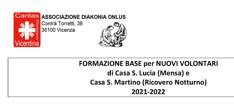 Caritas, Prossimità 7 Ottobre 2021 mtoffanello sabato 12 Febbraio 15:00 Formazione base per nuovi volontari di casa S. Lucia (mensa) e Casa S. Martino (Ricovero Notturno)Inizio: 12/02/2022 15:00