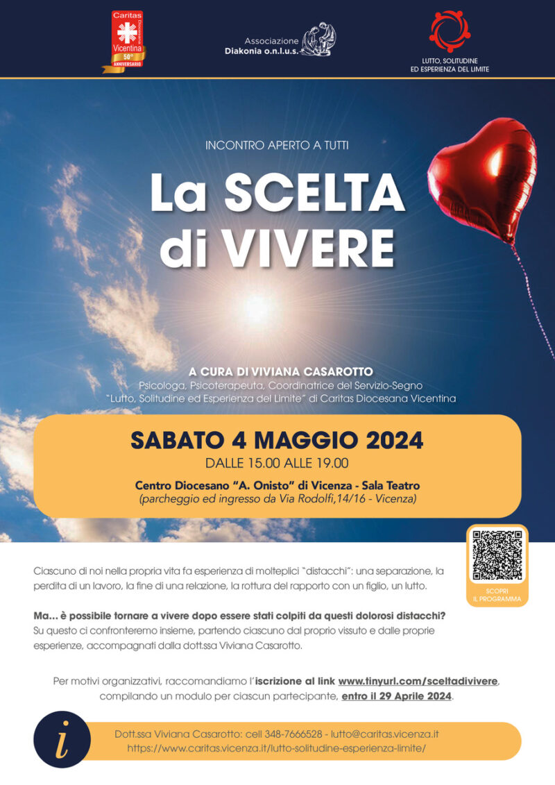 “La scelta di vivere”, IX incontro annuale promosso dal Servizio-Segno di Caritas Diocesana Vicentina “Lutto, Solitudine ed Esperienza del limite”
