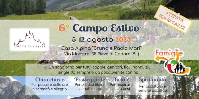 Annuncio, Matrimonio e Famiglia 11 Aprile 2023 mtoffanello sabato 5 Agosto 14:00 6° Campo Estivo 5 – 12 agosto 2023 a Pieve di CadoreInizio: 05/08/2023 14:00