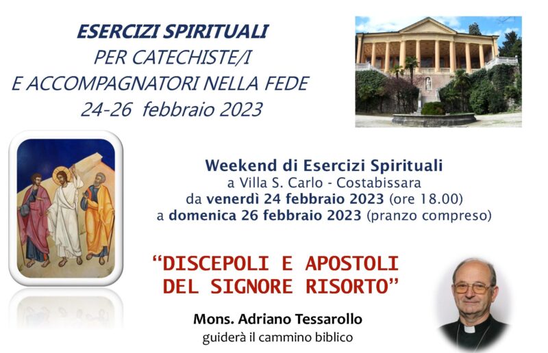 Matrimonio e Famiglia 22 Novembre 2022 cberti venerdì 24 Febbraio 18:00 ESERCIZI SPIRITUALI PER CATECHISTI E ACCOMPAGNATORI NELLA FEDE 24-26 febbraio 2023Inizio: 24/02/2023 18:00